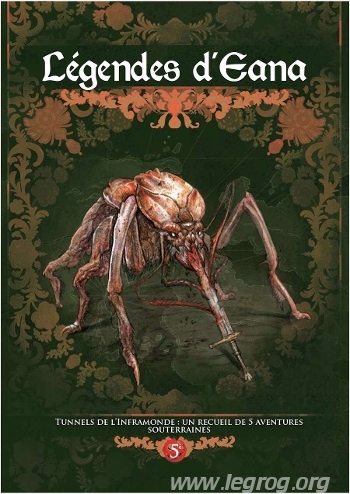 Les Légendes d’Eana sont des recueils d’aventures pour Dragons/Fateforge réunissant 5 scénarios autonomes autour d’une thématique commune. Ces scénarios ne nécessitent que les livres Aventuriers et Grimoire pour être joués — les périls, créatures, règles optionnelles et objets magiques étant fournis en annexe. Tunnels de l’Inframonde, premier livret de ce format, met en scène la lutte contre la découverte par les aventuriers de ce qui se cache loin de la surface d’Eana.