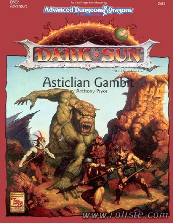 On continue la « campagne » des Dark Sun Quest avec Asticlian Gambit. Comme je l’ai déjà dit sur les autres ouvrages, de « campagne », elle n’en a que le nom puisqu’il n’y a pas vraiment de continuité scénaristique.