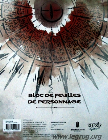Au recto, il s'agit de la version spécifique aux adeptes de la sorcellerie, avec une case spécifique pour les compétences magiques, en plus des compétences standards.