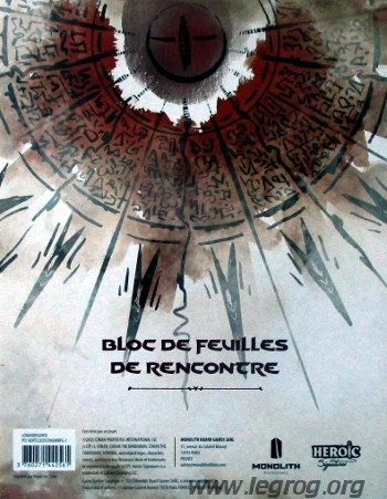 Encounter Sheet Pad (Bloc de Feuilles de Rencontre) propose une fiche de rencontre pour Conan: The Hyborian Age (Conan : l'Âge hyborien) et qui se divise en deux parties, afin d'y inscrire un sbire en haut de page et un antagoniste en bas de page.