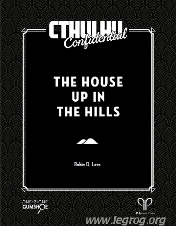 The House Up In The Hills est un scénario pour Cthulhu Confidential, prévu donc pour un meneur et un joueur. Cette histoire met en scène le privé Dex Raymond présenté dans le livre de base. Elle se déroule par défaut en 1937.
