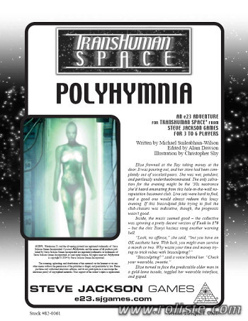 Polyhymnia est le club ultime, là où les modes se font et se défont. Vous ne vous rendez pas au club, c'est lui qui vous invite. Il change régulièrement d'emplacement, pour tromper son monde, et avoir la chance de s'y rendre ne serait-ce qu'une fois est un privilège. Ce club est attribué à Julian Cressida, un brillant méméticien soupçonné d'avoir oeuvré avec les groupes nanosocialistes Thaïlandais.