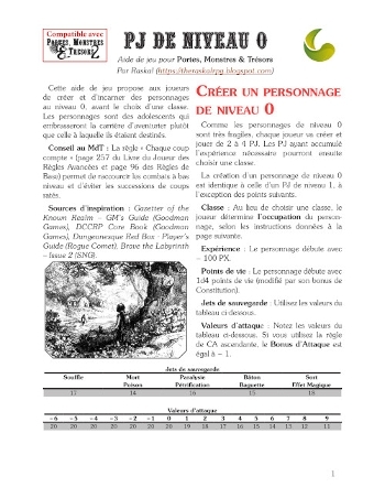 PJ de Niveau 0 propose de créer des personnages de niveau 0 plutôt que le niveau 1 classique.